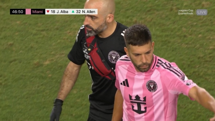 阿尔巴上半场遭队友误伤脚踝,下半场带伤短暂出战无奈退场 xiaoqiao 2025年09月01日 18:18 128 0 8月21日,联盟杯四分之一决赛迈阿密国际对阵老虎大学的比赛中,上半场补时阶段阿尔巴遭遇意外——被队友特拉斯科踩中脚踝。虽然下半场他坚持重返赛场,但仅出战一分钟便再次倒地,最终因伤提前离场。